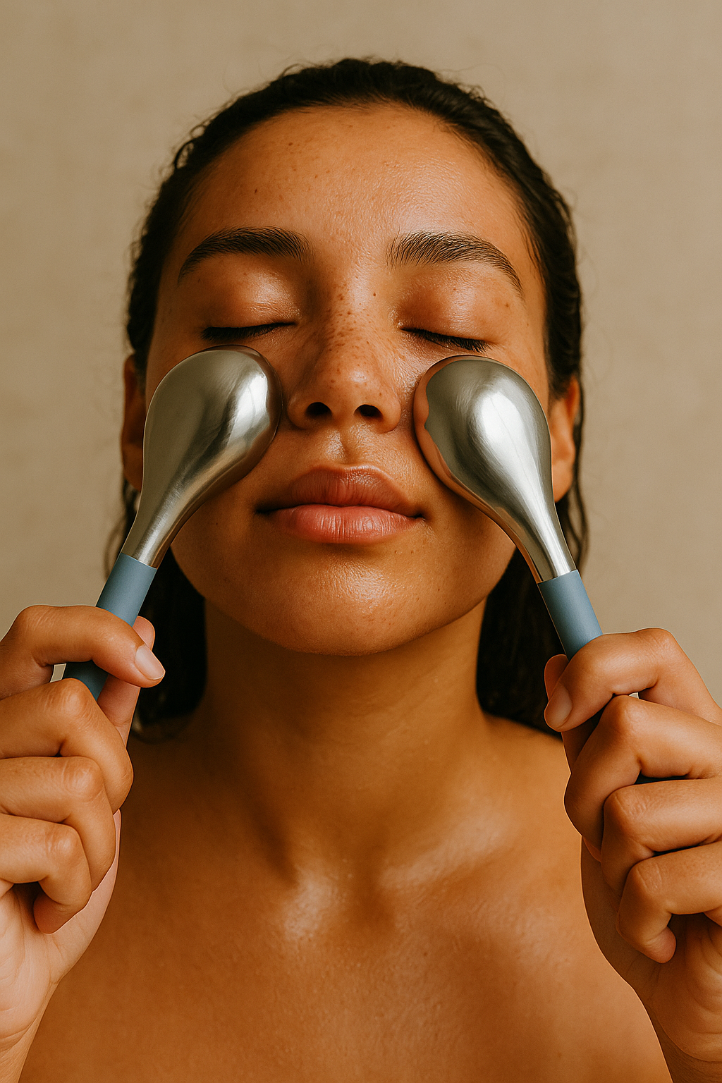 In addition to its soothing properties, cold has a draining, decongestant and firming effect. The cold sensation is picked up by receptors in the skin, causing a “goose bump” phenomenon, which stimulates nerve cells in the skin and has a tightening effect on the epidermis.