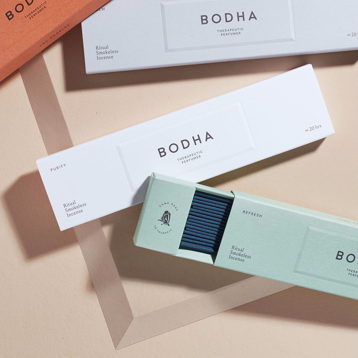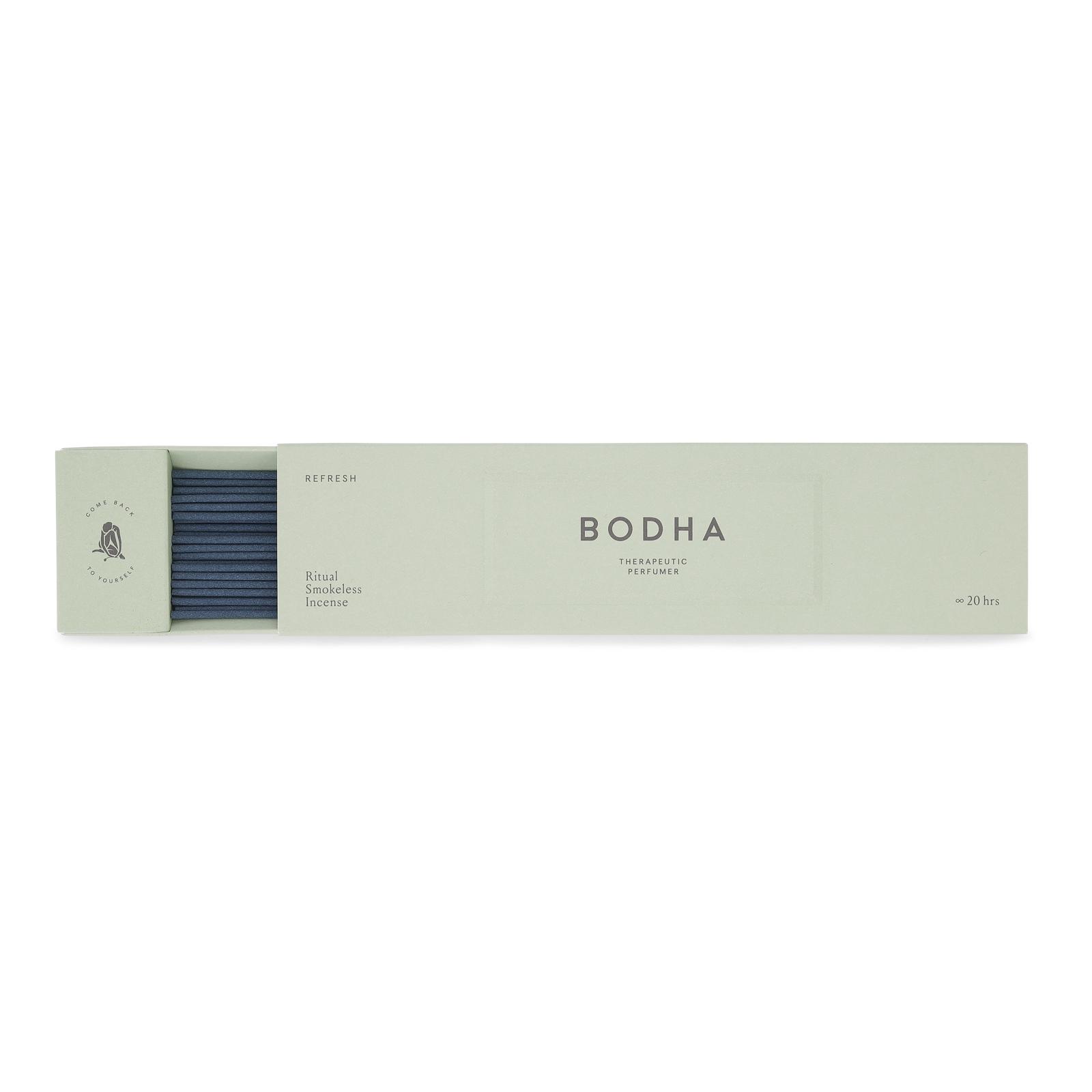 It is no wonder that Bodha has named this Japan-produced incense after its refreshing qualities. Made from the the finest organic woods and essentials oils, Smokeless Incense – Refresh has an energizing and invigorating effect on your body, mind and soul, as its gentle fragrance of clean green notes of petitgrain, violet leaf and frankincense fill up the room.