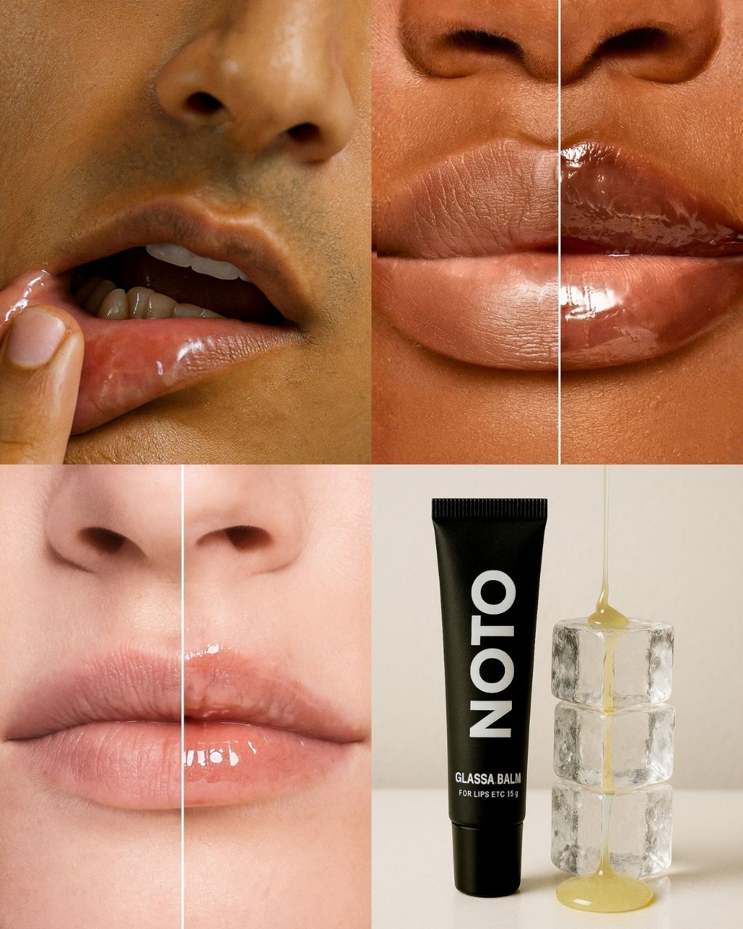 Meet Glassa Balm — your everything balm, elevated. A hybrid between a lip oil and a classic balm that melts right onto your lips. Designed for anyone who loves a touch of glow without the stick. Think skin-care-level nourishment, invisible sheen, and the fresh cool of peppermint breath meeting botanical dew. It's something I've been working to bring to the NOTO family for a long time, and I am so excited to share it with you! - XO Gloria