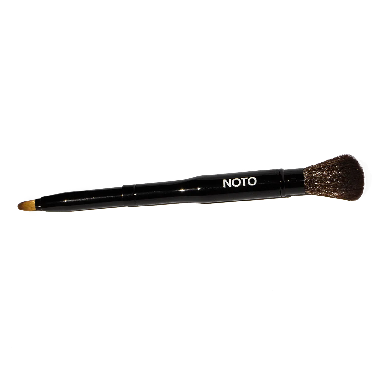 The Lip & Cheek Duo Brush is designed to please professional needs. The outcome is a brush with a multi-use function, celebrating one of the core values of Noto. The Duo Brush has dual-ended retractable brushes. One side is suitable for blending out contour and color on the face, cheeks, and applied areas, while the opposite end is the perfect precision brush, great for lips and even eyes. Both ends have a cap and cover, making this the perfect brush for your purse or bag, keeping things clean.
