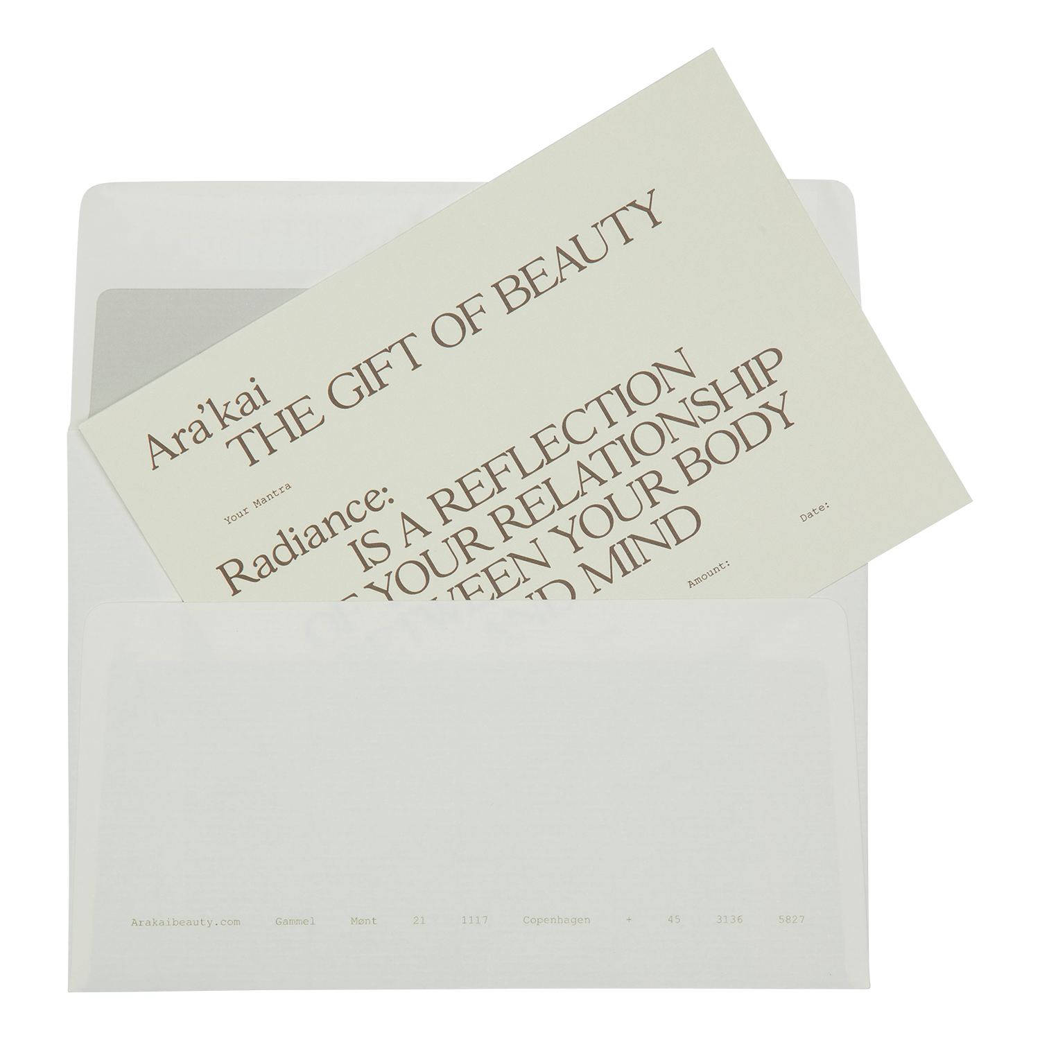 The Ara´kai Beauty Gift Cards are redeemable at Ara´kai Beauty only (both online and in-store). The value of the gift card purchased does not apply to any promotional offers. Gift cards cannot be used to purchase other gift cards or redeemable for cash. Unfortunately, the card cannot be replaced if lost or stolen.